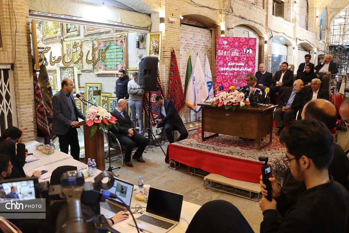 نشست خبری غلامحسین مظفری، استاندار خراسان رضوی، صبح شنبه ۳۰ فروردین ۱۴۰۴ در بازار تاریخی فرش مشهد برگزار شد. این نشست با حضور خبرنگاران و فعالان اقتصادی برگزار گردید و محورهای اصلی آن شامل حفظ و توسعه میراث فرهنگی، راهکارهای رونق اقتصادی بازارهای سنتی، و برنامههای مدیریت منابع استان بود.