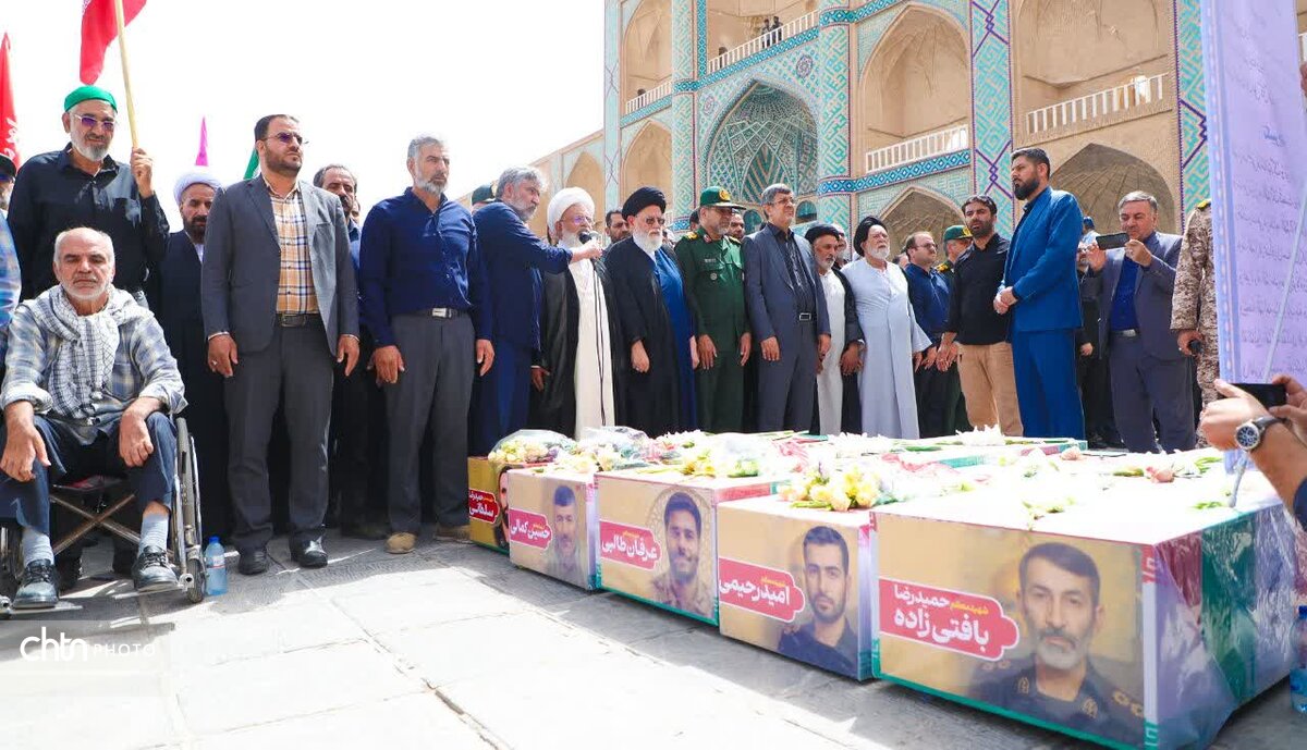 پیکر مطهر شهدای مظلوم حمله جنایتکارانه رژیم صهیونیستی، بر دستان مردم داغدار اما استوار یزد تشییع شد؛ میدان امیرچقماق امروز، نه فقط میدان وداع، که میدان بیعت دوباره با آرمان شهیدان نیز بود.