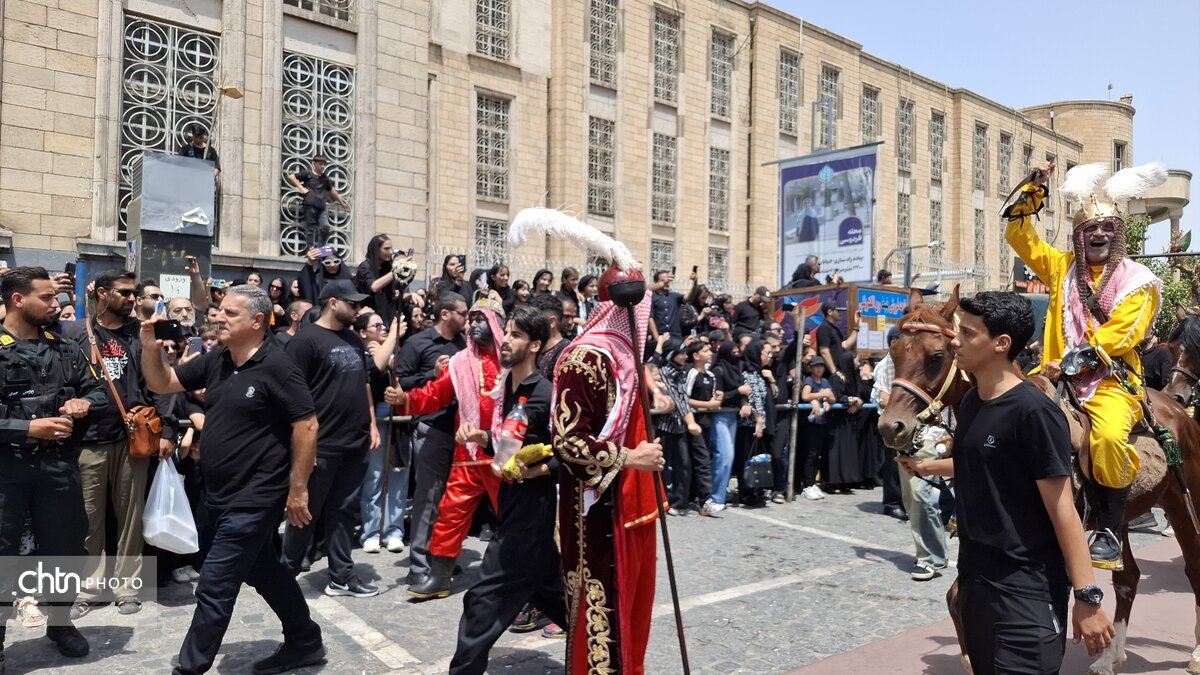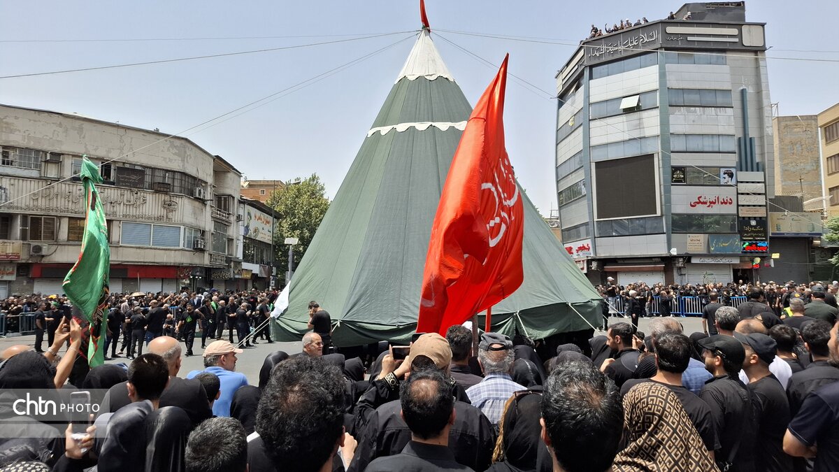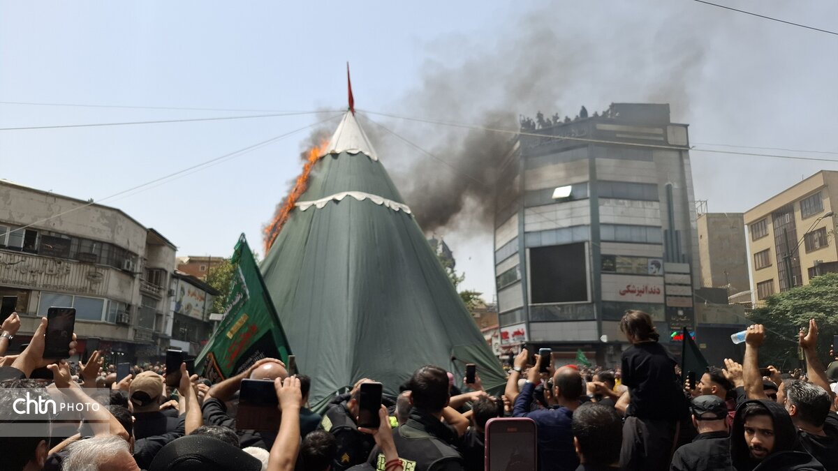 مراسم خیمه سوزان در روز عاشورا، یک آیین مذهبی است که به طور نمادین واقعه به آتش کشیدن خیمههای اهل بیت در کربلا را بازسازی میکند. این مراسم معمولاً در روز عاشورا و بعد از ظهر برگزار میشود. در تهران، یکی از معروفترین این مراسمها در چهارراه گلوبندک، در بازار تهران برگزار میشود