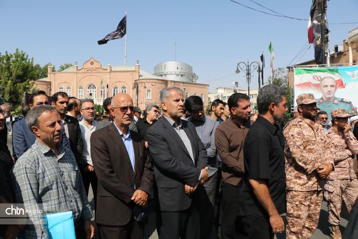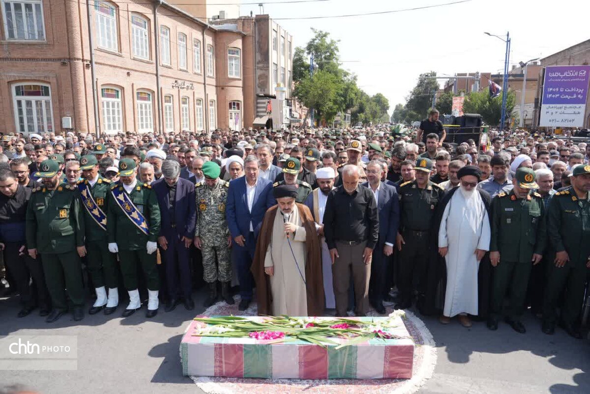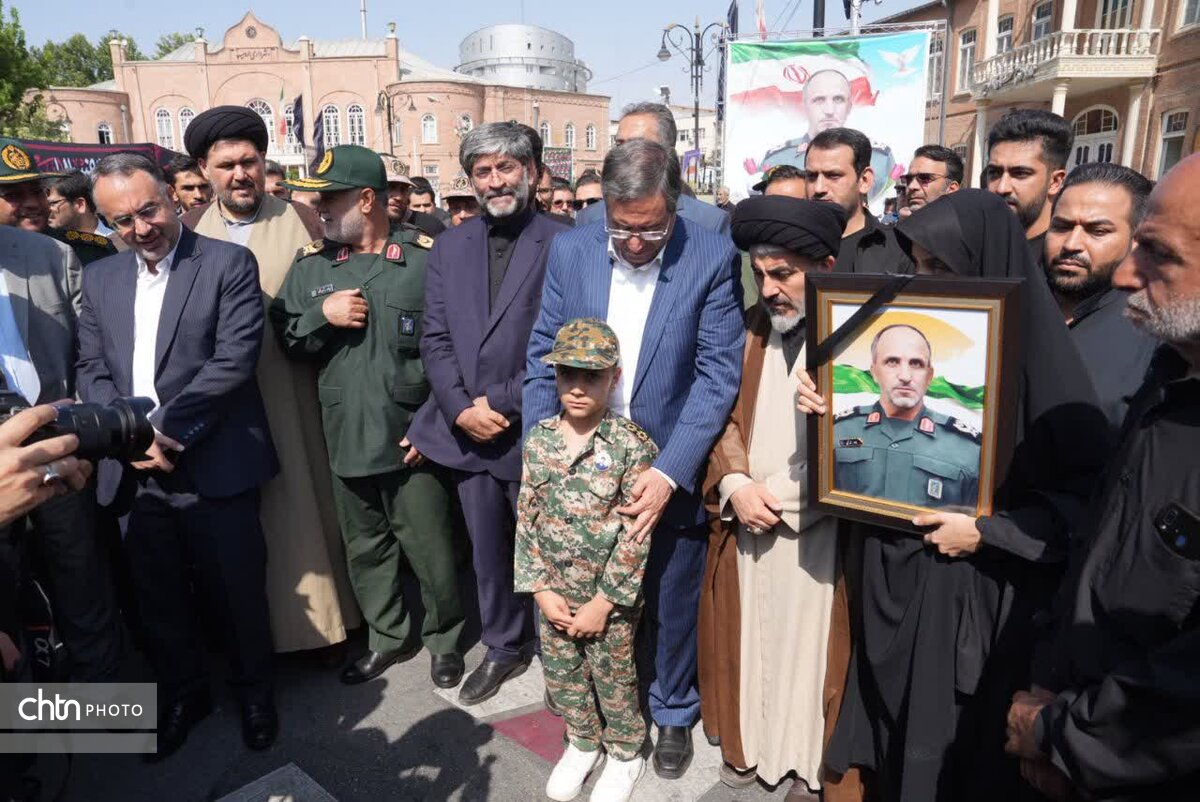 پیکر پاک و مطهر سردار شهید نارنجی از فرماندهان لشکر ۳ حمزه سیدالشهدا که در حملات چهل روز پیش رژیم صهیونیستی به پادگان المهدی ارومیه مجروح شده و چند روز پیش به قافله شهدا پیوست صبح امروز با حضور خانواده، آشنایان، همرزمان، مسئولین استانی و شهری و مردم قدرشناس و شهیدپرور ارومیه تشییع شد.