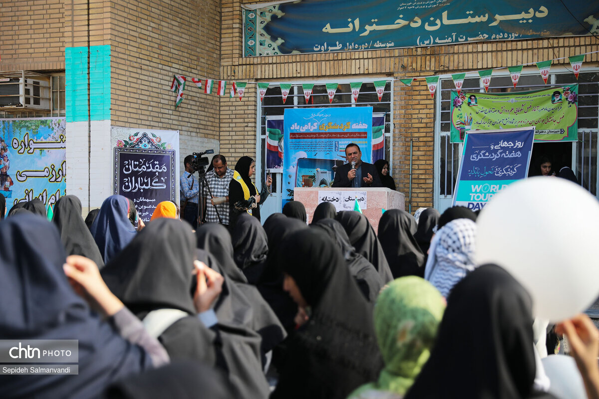 به مناسبت روز جهانی جهان‌گردی و آغاز هفته ملی گردشگری، زنگ استانی گردشگری در دبیرستان دخترانه «طراوت» در منطقه کوروش اهواز نواخته شد.