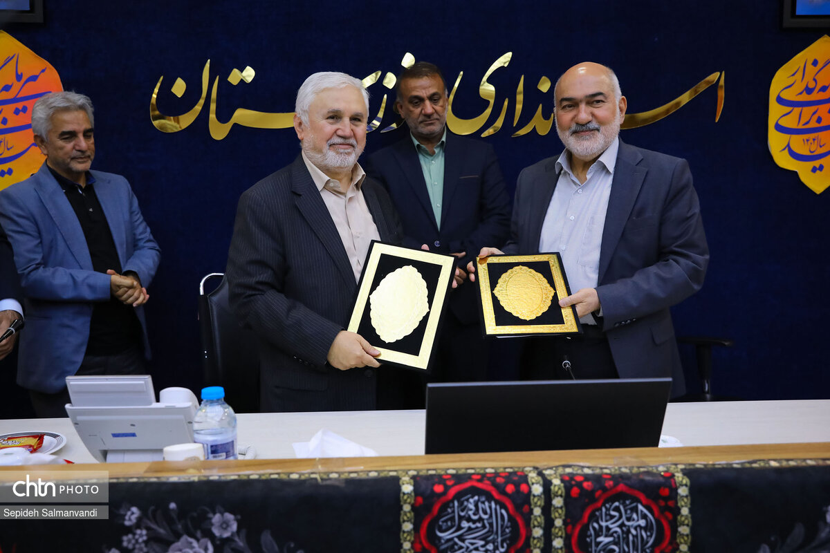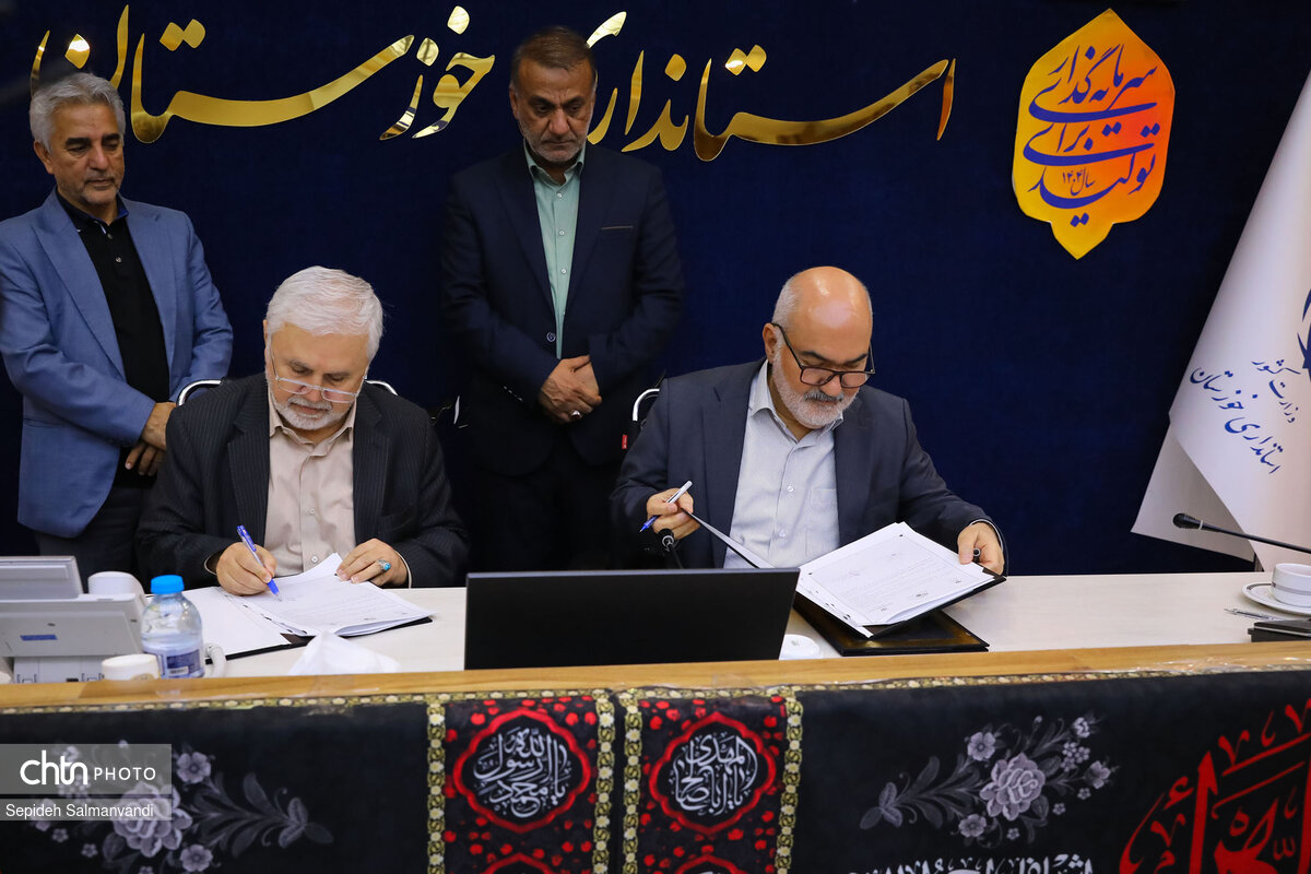 نشست هماهنگی و امضای تفاهمنامه علی دارابی، قائم مقام و معاون وزیر میراثفرهنگی، با محمدرضا موالیزاده، استاندار خوزستان، و مدیران دستگاههای دولتی جهت برگزاری چهارمین جشنواره بینالمللی چندرسانهای میراثفرهنگی در استانداری خوزستان برگزار شد.