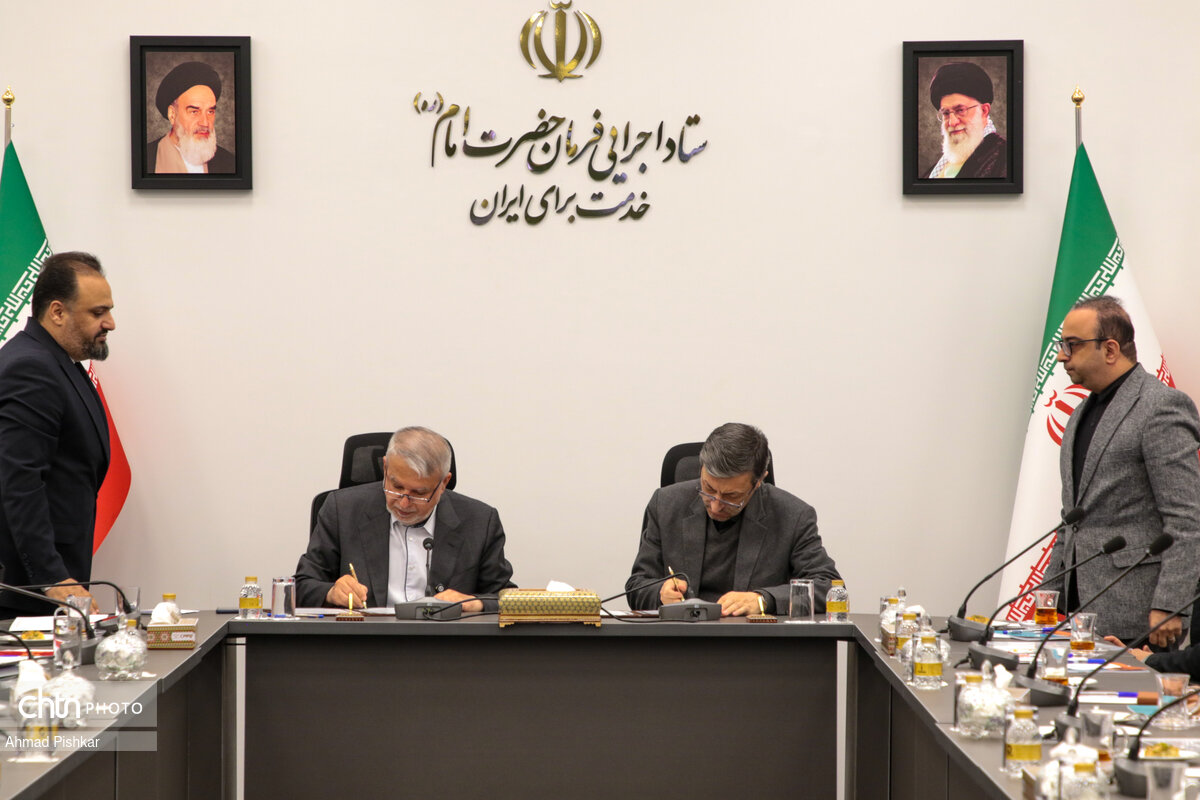 آیین امضای تفاهمنامه همکاری میان وزارت میراثفرهنگی، گردشگری و صنایعدستی و ستاد اجرایی فرمان حضرت امام(ره) صبح سهشنبه ۴ آذر با حضور سیدرضا صالحیامیری وزیر میراثفرهنگی و پرویز فتاح رئیس ستاد اجرایی فرمان امام(ره) برگزار شد.