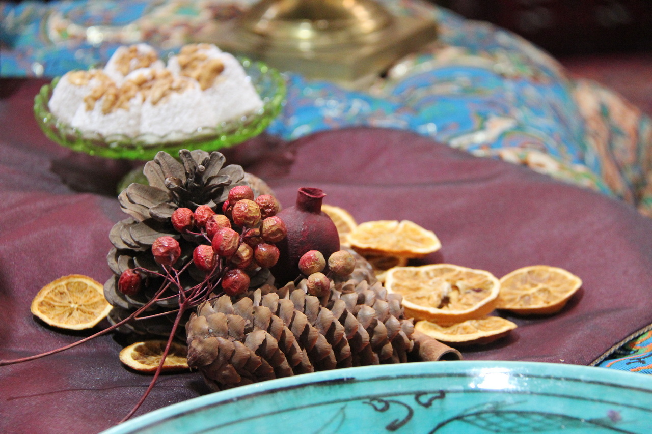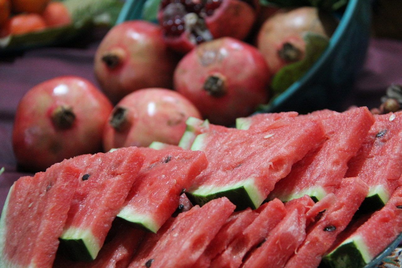 از جمله آداب گذشته‌ی مردم قزوین در شب‌نشینی چله که معمولا بعد از شام گرد هم جمع می شدند،خوردن هندوانه، میوه‌های قرمز رنگ مانند لبو و خرمالو بود و این‌گونه بلندترین شب سال را به اولین صبح زمستانی گره می‌زنند.