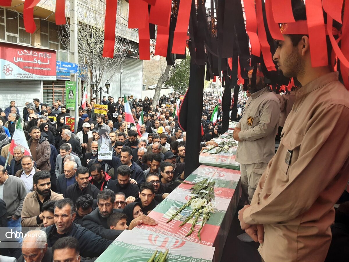 مراسم وداع با ۱۲ شهید مدافع اقتدار ایران اسلامی در حرم مطهر شاهچراغ(ع) با حضور خانواده معظم این شهدا برگزار و سپس با حضور مردم همیشه در صحنه شیراز تشییع شد.