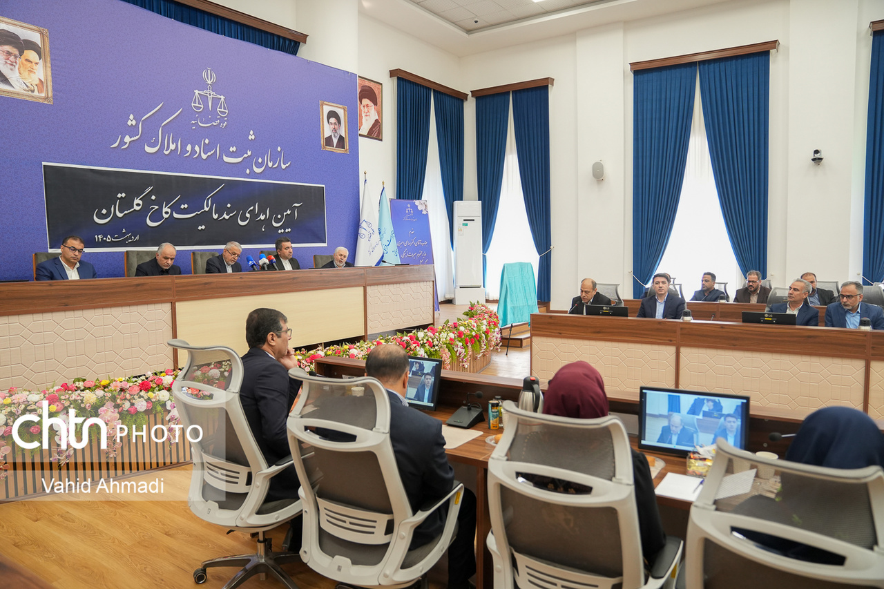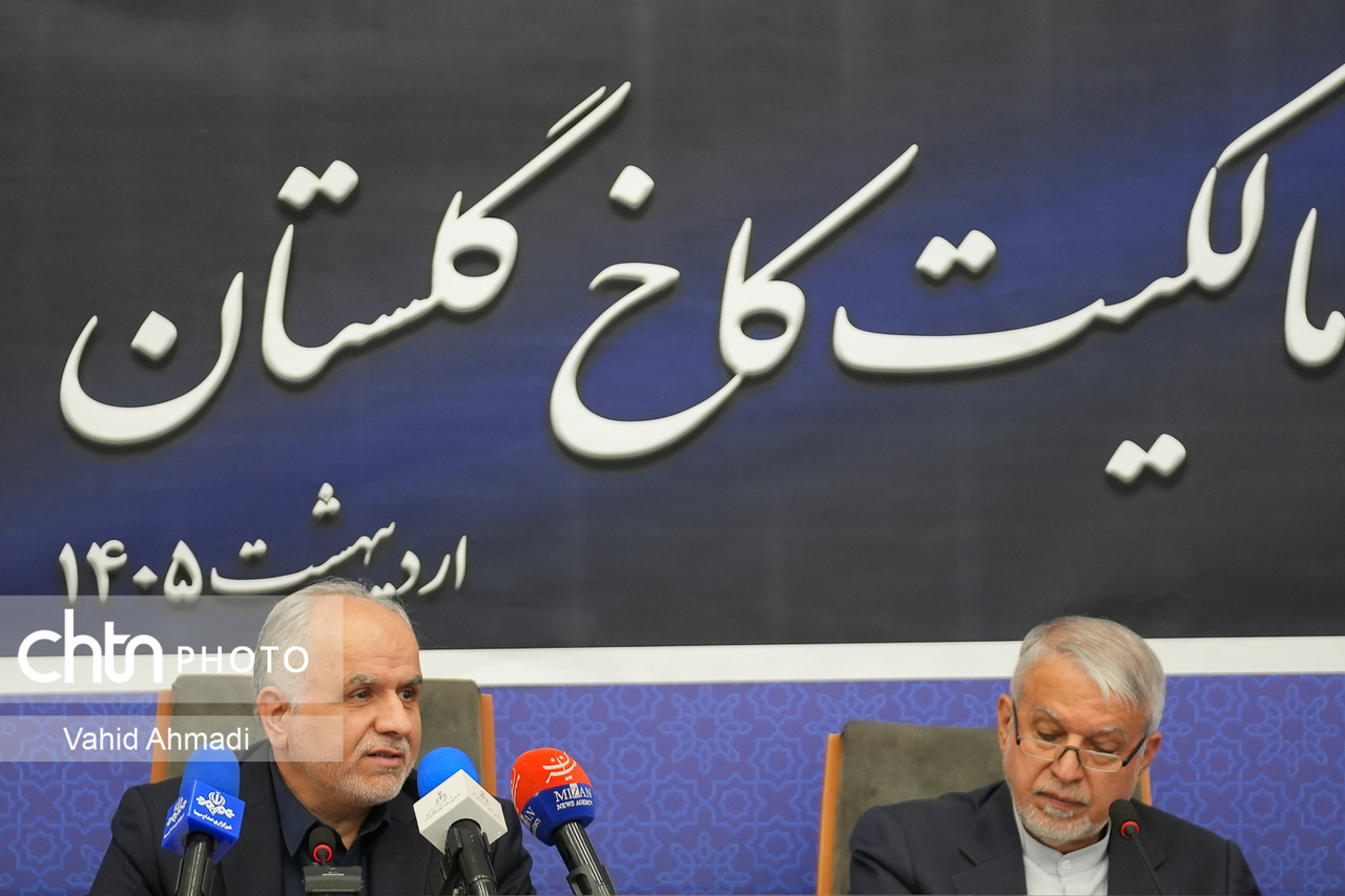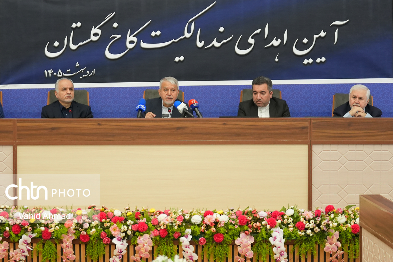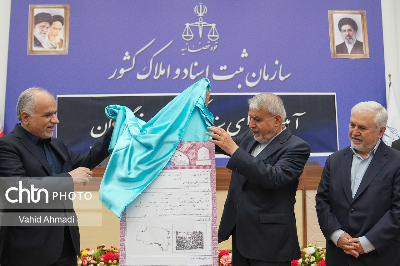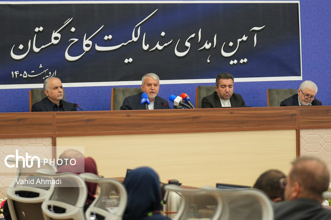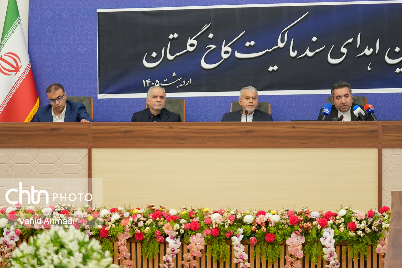 آیین اهدای سند مالکیت کاخ گلستان با حضور سیدرضا صالحیامیری وزیر میراثفرهنگی، گردشگری و صنایعدستی، امینحسین رحیمی وزیر دادگستری، حسن بابایی رئیس سازمان ثبت اسناد و املاک کشور، علی دارابی قائممقام وزیر و معاون میراثفرهنگی کشور و جمعی از مدیران دو دستگاه در محل سازمان ثبت اسناد و املاک کشور برگزار شد.